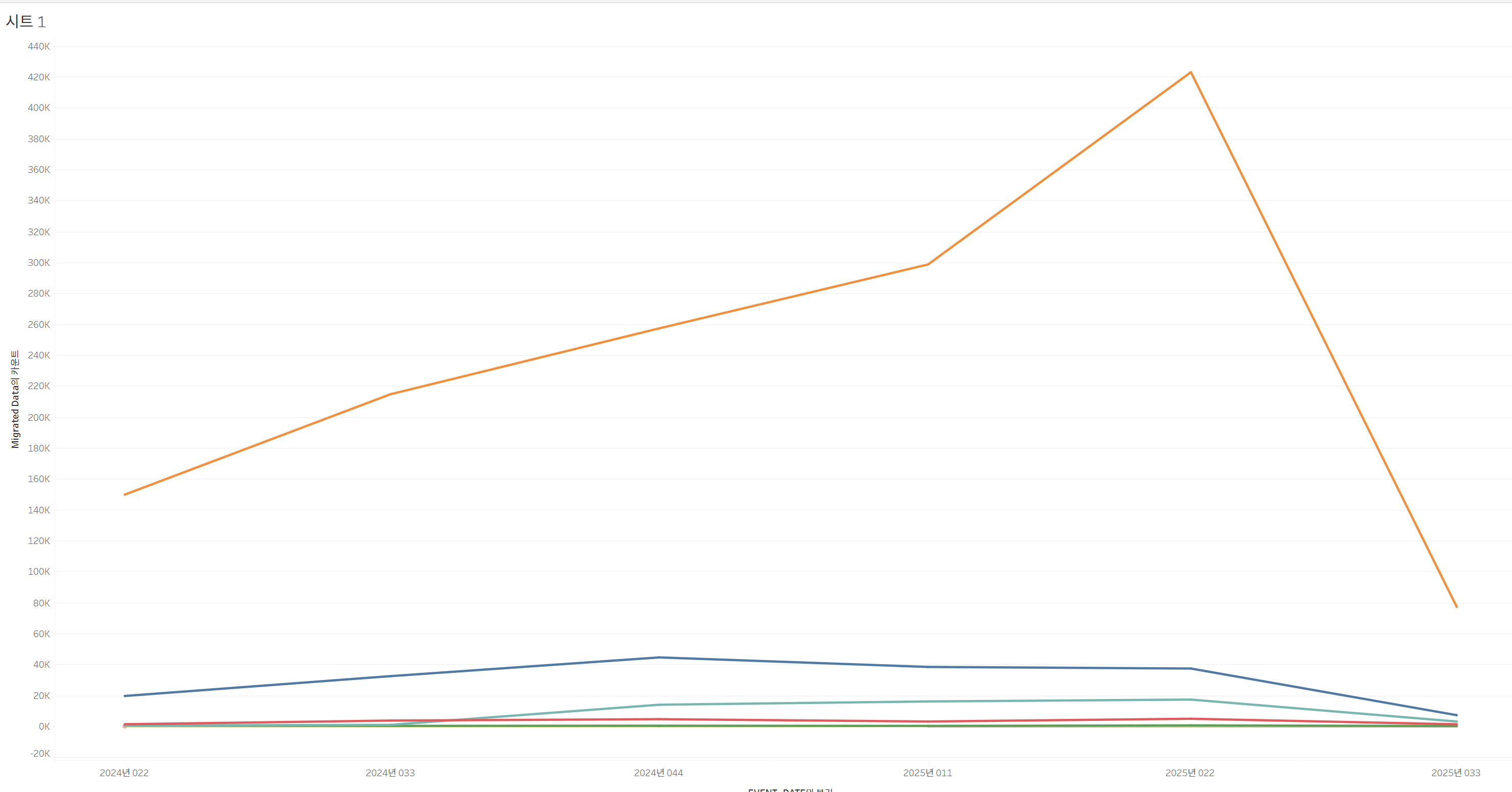 - 실수: 스택형 영역차트에서 중간 레이어 변화를 읽기 어려움