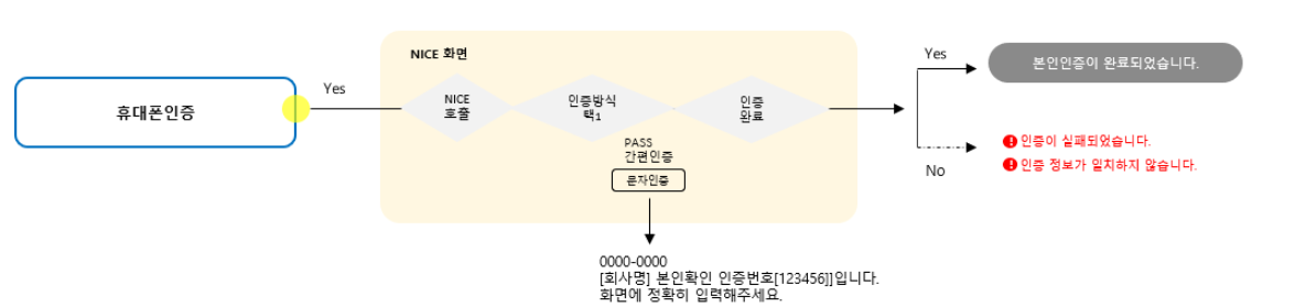 - 인증 성공/실패 처리: 인증에 성공하면 다음 단계로 이동, 실패하면 재시도 또는 고객센터로 연결.