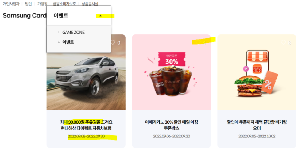 위 구성은 삼성카드 뿐 아니라 일반적으로 이벤트 상세 화면에서 구성되는 요소입니다.