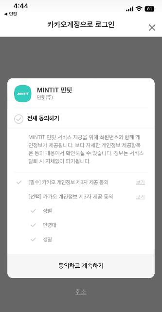 3. 카카오 간편 로그인 약관 동의
