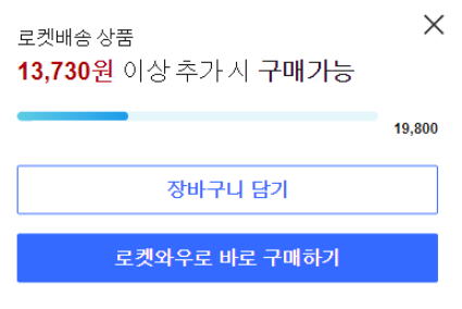 로겟 배송 상품이라면 와우 회원이 아닌 경우 , 결제하기 버튼 클릭 시 로켓배송 최소금액를 체크하여